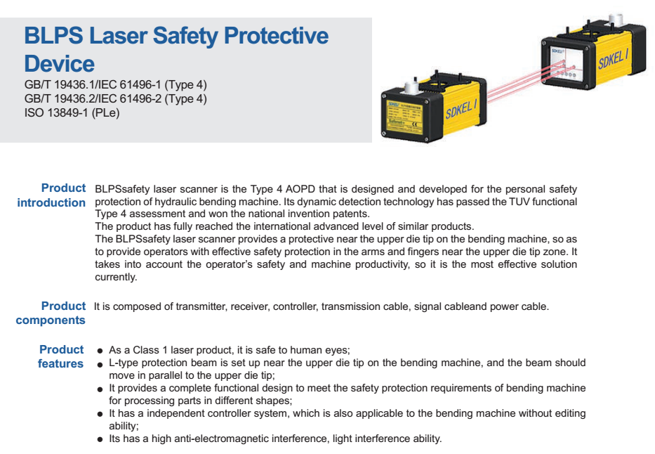Production introductionBLPS laser safety protective device is designed for personal safety used on hydraulic bender.