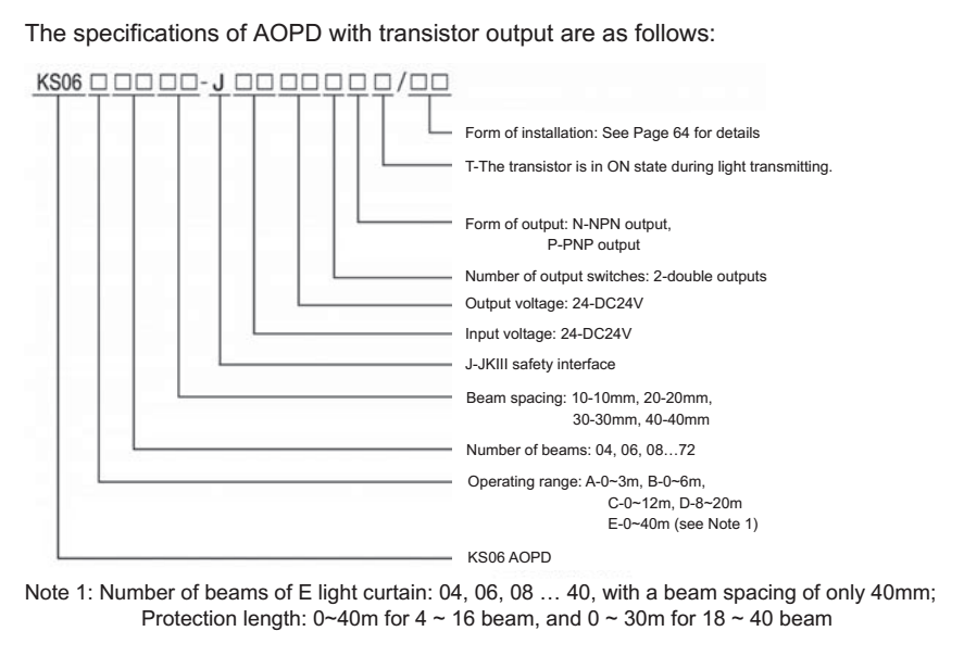 Product DescriptionProduct introduction:The KS06 Safety Light Curtain meets requirement of safety lavel 4. KS06 AOPD can effectively detect all apaque objects in the light curtain area that exceed the detection accuracy. It is applicable to the safety protection for mechanical presses, hydraulic machines, shears, bending machines and other dangerous places.
