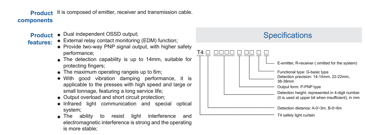 Model No.: T4 safety light curtain