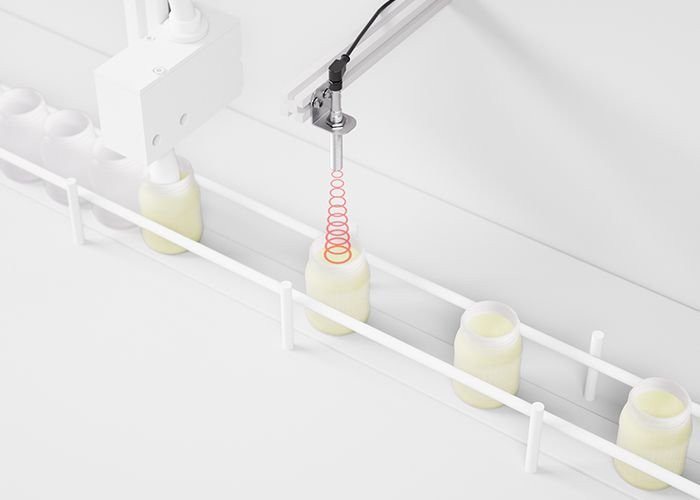 The ultrasonic technology ensures a broad range of applications in many different industries: An ultrasonic sensor emits an acoustic pulse and measures the time the acoustic pulse reflected by an object takes to return to the sensor. The principle of propagation time measurement is used to precisely calculate the distance to the object. The ultrasonic waves are reflected by the object, completely irrespective of the type of surface. This means that sound-reflecting materials – glossy or reflective, transparent or extremely dark – do not hinder reliable detection. Products with hard-to-identify geometries or fill levels of liquids, powders or granulates can also be checked contactlessly and extremely precisely using ultrasonic sensors.